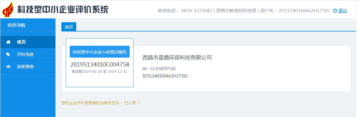 西昌市藍(lán)鼎環(huán)?萍加邢薰、攀枝花市藍(lán)鼎環(huán)保科技有限公司于5月10日同時(shí)通過四川省科學(xué)技術(shù)廳科技型中小企業(yè)認(rèn)證審核,并在5月10日至5月23日進(jìn)行網(wǎng)上公示,年5月24日兩公司均公示合格獲得科技型中小企業(yè)認(rèn)證入庫(kù)編號(hào)。