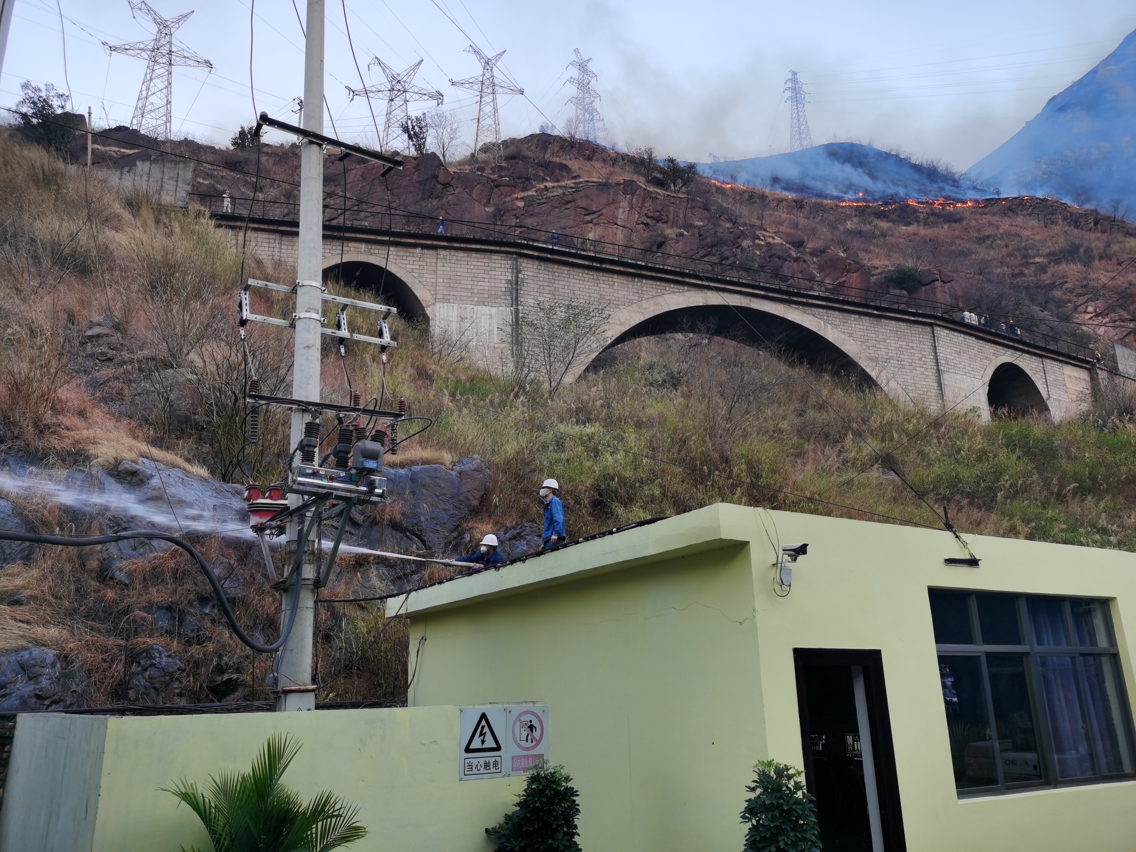 火災發(fā)生后,當地消防、交通部門迅速行動,趕赴火場進行現場指揮和交通管制。各工廠也在積極響應《應急預案》,依托消防栓及消防水管設置水槍陣地,采取對工廠周圍的枯草和植被進行不間斷澆水、各工廠分區(qū)域逐片抵御的戰(zhàn)術方法,對山火的蔓延進行有效阻止。