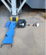 演練器材準備救援隊員穿戴救援器材受傷人員轉(zhuǎn)移至安全場所進行人工呼吸。